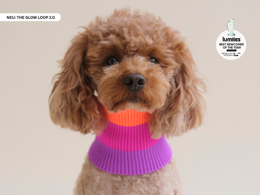 - Our Glow Beanies are made from 100% recycled materials and are enhanced with special microencapsulated pigments. This unique technology significantly intensifies the neon colors, while the smooth surface excellently reflects ambient light. This yarn has been exclusively developed for our Glow Collection to ensure that your dog is not only stylish but also visible - day and night.